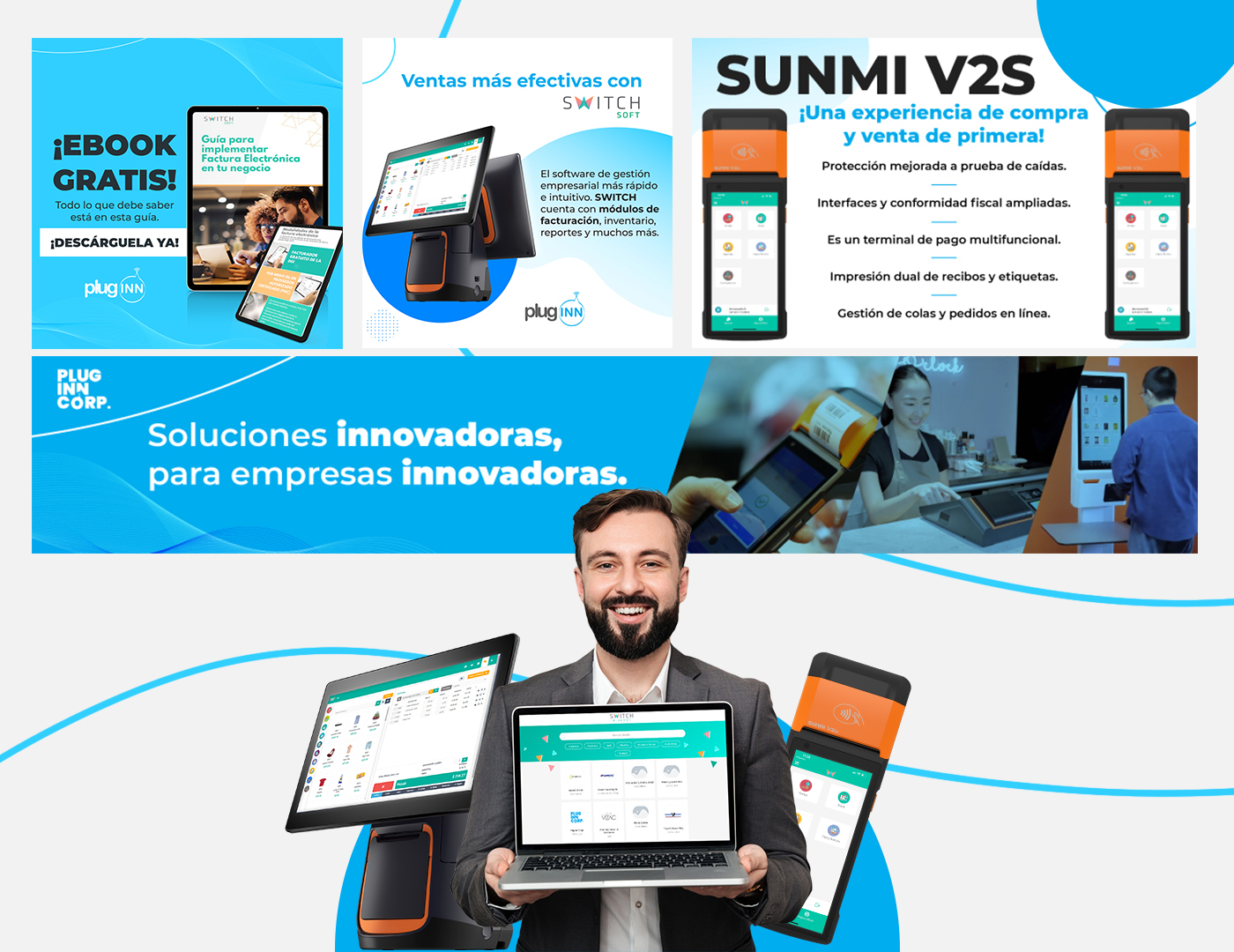 En este proyecto, se desarrolló una identidad visual atractiva y profesional para las redes sociales de PLUGINN, una empresa especializada en la venta de puntos de venta (POS) y soluciones tecnológicas para negocios. El objetivo fue comunicar de manera clara y efectiva los beneficios de sus productos, destacando su innovación y facilidad de uso.