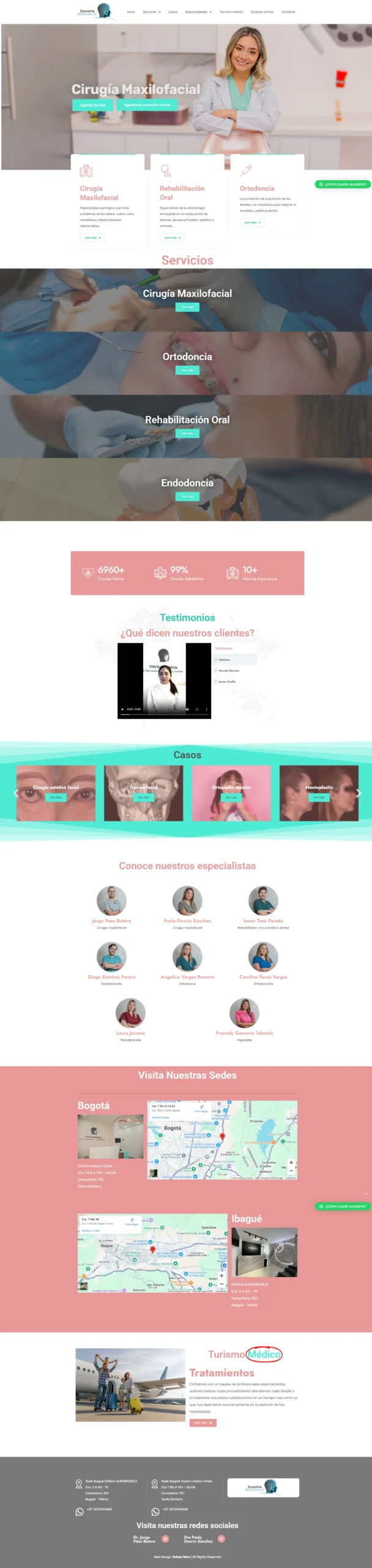 Diseño web en WordPress para SymetriaMaxilofacial.com, una clínica odontológica especializada. El sitio destaca por su estética limpia y profesional, navegación intuitiva y enfoque en la confianza del paciente, integrando secciones clave como servicios, equipo médico y agendamiento de citas.
